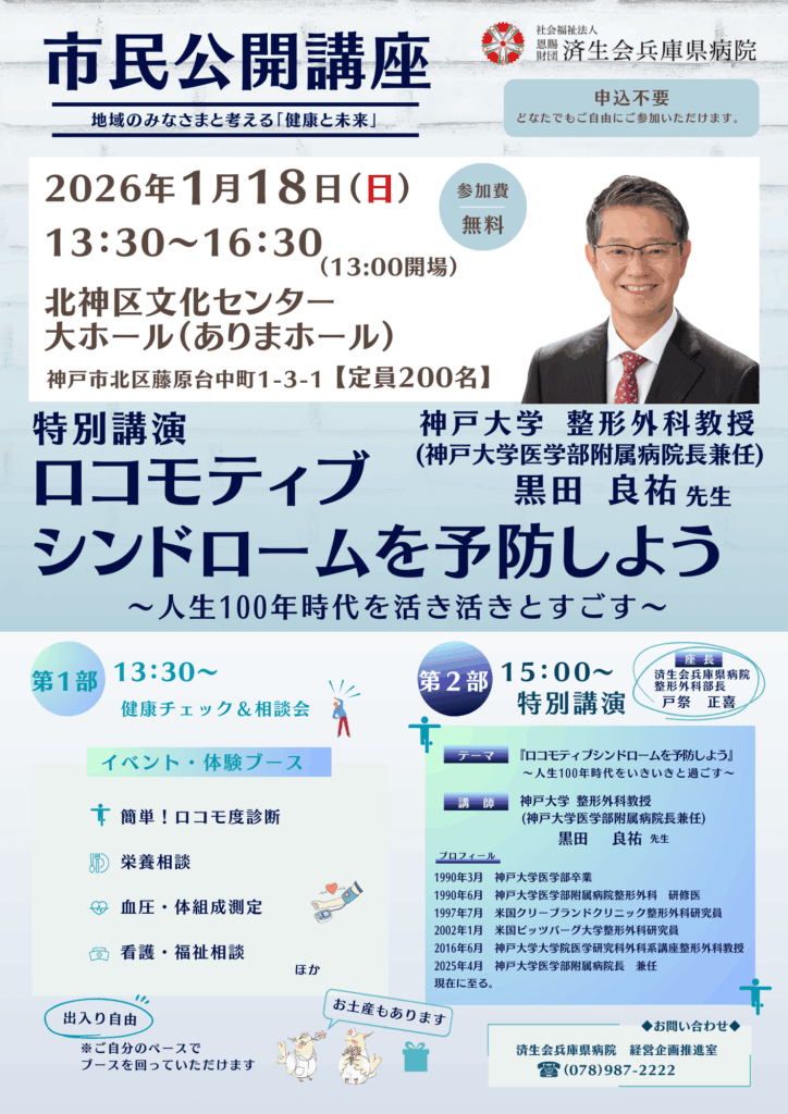 (1/18開催)市民公開講座【『ロコモティブシンドロームを予防しよう』~人生100年時代を活き活きとすごす~】